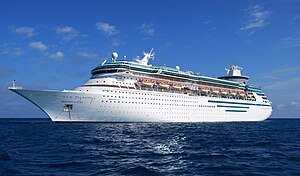 English: MS Majesty of the Seas, one of Royal Caribbean International’s Sovereign class cruise ships, anchored off Coco Cay, Royal Caribbean’s name for Little Stirrup Cay, an island located in the Bahamas. (Photo credit: Wikipedia)